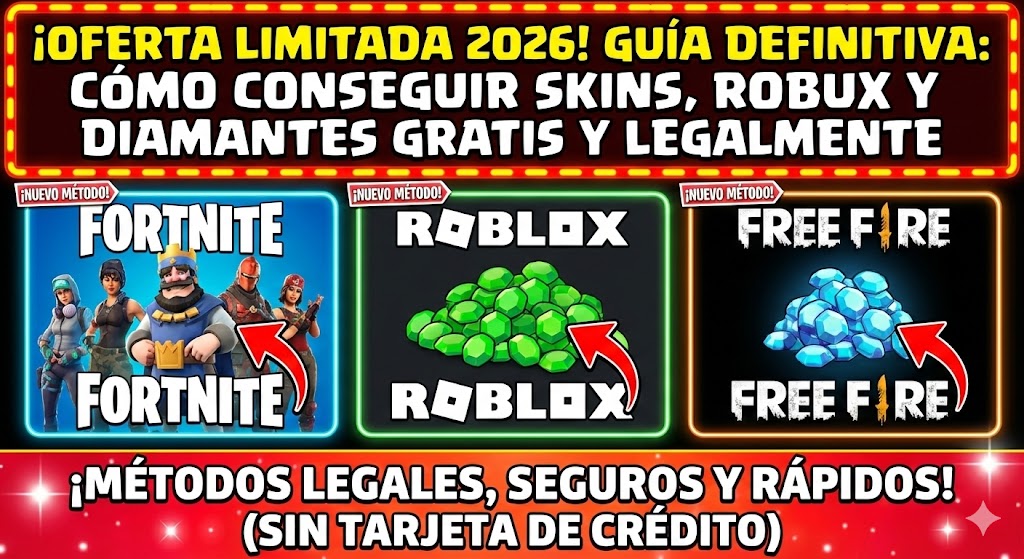 Cómo Conseguir Skins, Robux y Diamantes Gratis y Legalmente (Sin Tarjeta de Crédito)